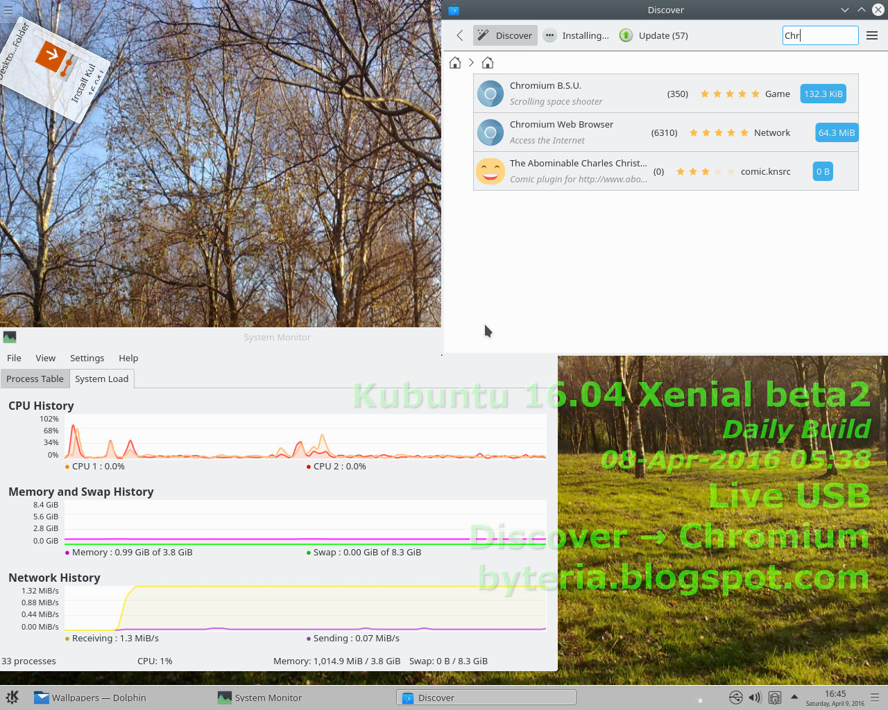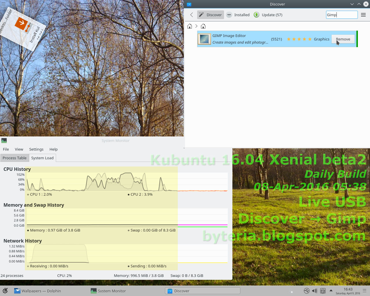 - 2º Teste de trabalho no Kubuntu 16.04 Xenial beta2 em Live USB